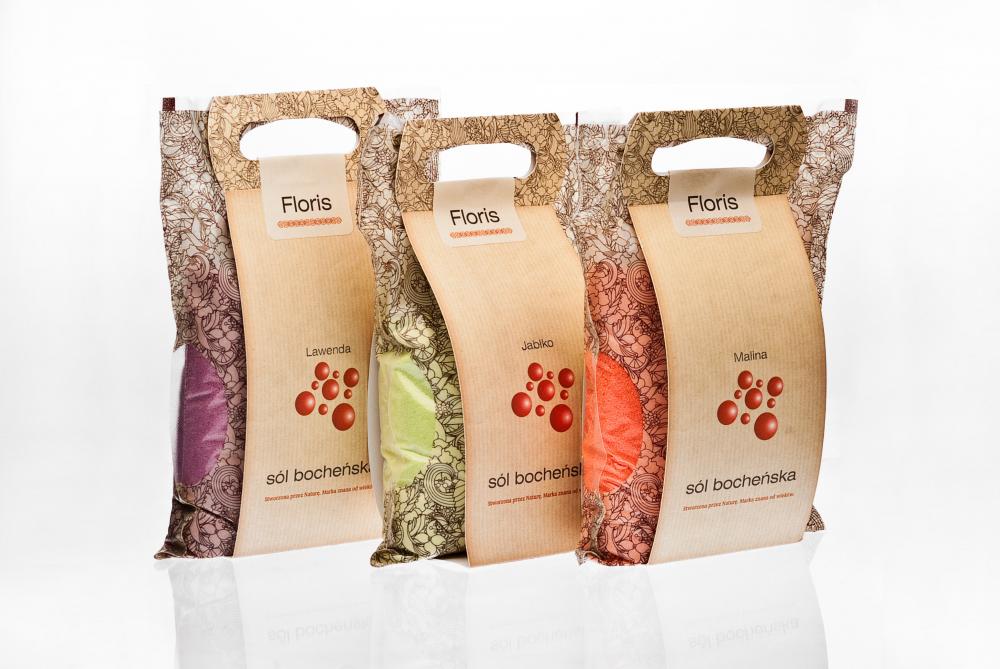 Kosmetyczne sole kąpielowe FLORIS tworzą wyjątkowo zróżnicowaną kolekcję, nowoczesną pod względem barw i kompozycji zapachowych a jednocześnie wytwarzaną w oparciu o tradycyjne, naturalne metody. Sekretem niezwykłych właściwości soli FLORIS jest zastosowanie jako głównego składnika bocheńskiej soli jodowo-bromowej. Uwalniający się w trakcie kąpieli wolny jod wywołuje wrażenie przebywania w morskiej wodzie i oddychania jodowanym morskim powietrzem. Obecność jonów wapniowo-magnezowo- bromkowo–jodkowych powoduje aktywną regenerację naskórka a zastosowanie najwyższej jakości kolagenu doskonale wpływa na poprawę jędrności skóry.