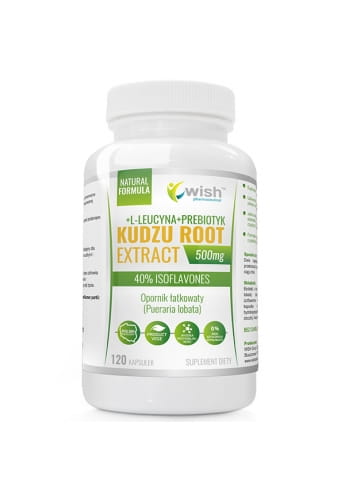 Mega dawka (2 kapsułki) - Kudzu Root WISH Pharmaceutical® to suplement diety dostarczając aż 1000mg czystego extractu z korzenia Kudzu (Opornik Łatkowaty) standaryzowanego na 40% Izoflawonów.